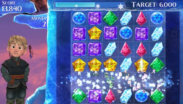 Frozen Free Fall (ook voor Android) is een eenvoudige puzzelgame die erg lijkt op het populaire spelletje Candy Crush. Door in een speelveld drie kristallen aan elkaar te rijgen, scoor je punten. Via de juiste matches probeer je in ieder level genoeg punten te halen. Hiervoor mag je een beperkt aantal zetten doen. Frozen Free Fall is ontwikkeld door Disney en dat is aan de sprookjesachtige sfeer goed te merken. Speel deze puzzelgame bij voorkeur op een tablet, want het speelveld is op een smartphone-scherm wat aan de krappe kant.
