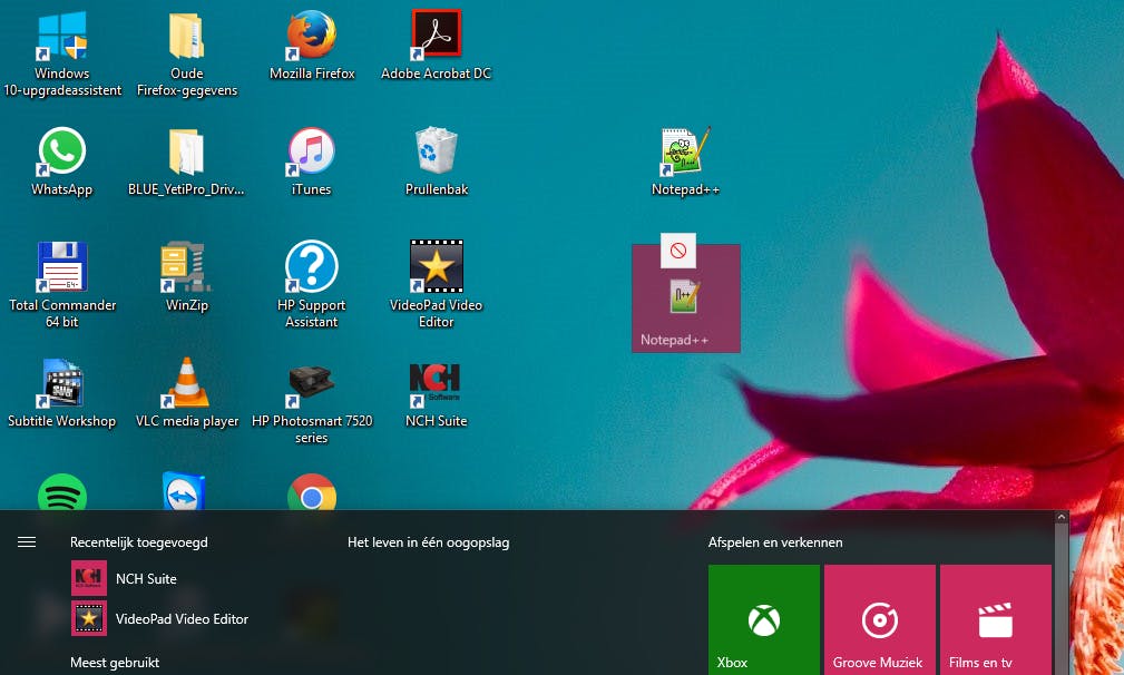 Als je Notepad++ geïnstalleerd hebt, dan wil je het natuurlijk wel net zo makkelijk kunnen starten als Kladblok. Het programma maakt zelf geen snelkoppeling aan op je bureaublad en ook komt er geen tegel in het menu Start. Dat kun je heel eenvoudig zelf doen. Klik op Start, je ziet Notepad++ nu linksboven staan bij Recentelijk toegevoegd. Rechtsklik op het pictogram en kies vervolgens voor Aan Start vastmaken. Er is nu een tegel voor je ‘nieuwe’ Kladblok. Wil je nu een snelkoppeling aanmaken, dan kan dat heel eenvoudig: sleep het pictogram van Notepad++ naar je bureaublad. De snelkoppeling wordt nu voor je gemaakt.