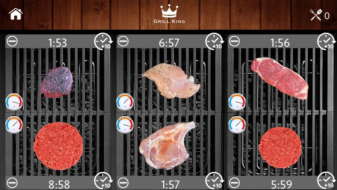 Grill King is een slimme app. Je geeft aan wat voor stukjes vlees op je barbecue liggen en zet tot maximaal zes verschillende timers aan. In de app zie je nu meteen hoe lang het stukje kip nog moet liggen, of de burger al klaar is en wanneer je steak mals genoeg is. Het enige nadeel is dat de selectie aan vlees een beetje karig is; je vindt er geen spiesen, worstjes of vis. De app toont reclame, maar via een in-app-aankoop kun je deze wegtoveren.