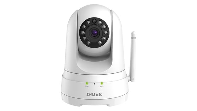 Dankzij rotatiemogelijkheden op een ronde voet hebben pan & tilt-camera’s altijd een groot bereik. Zo kan de DCS-8525LH zowel links als rechts 170 graden draaien, zodat je zo nodig de volledige ruimte in beeld brengt. Voor connectiviteit met het netwerk is er een 802.11n-adapter ingebouwd met uitsluitend ondersteuning voor de 2,4GHz-band. Opvallend genoeg is er ook een bluetooth4.0-ontvanger aanwezig. Voor een bekabelde verbinding bevat het apparaat een 10/100Mbit-ethernetpoort.