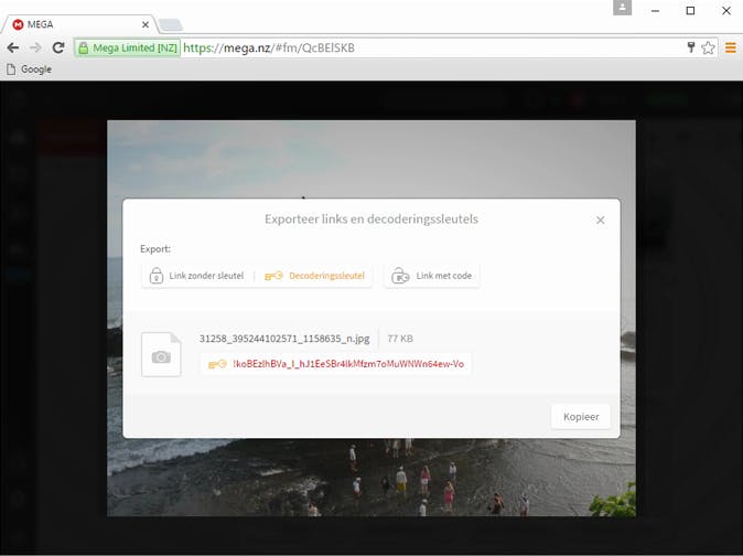 Als je een bestand met iemand deelt, dien je de decoderingssleutel mee te sturen.