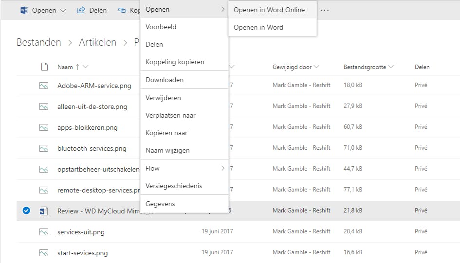 Als alternatief kun je ook gewoon een link sturen, maar dan kan de persoon het bestand niet bewerken; alleen downloaden is dan nog een optie. Het is dus wat omslachtig om samen te werken met iemand die geen account heeft bij Dropbox. De Windows-app van Dropbox nestelt zich desgewenst als plug-in in Microsoft Office, waardoor je bijvoorbeeld in Word direct een bestand met iemand anders kunt delen.