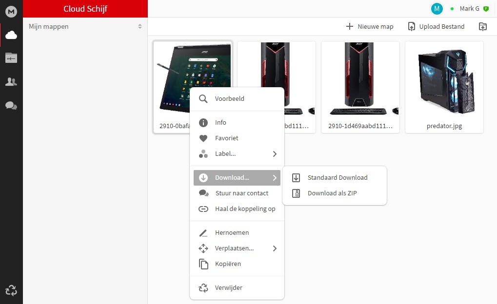 Strato heeft apps voor Windows, macOS, iOS en zelfs voor Synology-nas’en. De app voor Windows biedt de mogelijkheid om een stationsletter te koppelen, waardoor je de dienst als netwerkschijf via WebDAV kunt gebruiken. Met behulp van een lokale synchronisatiemap kun je al je bestanden naar de cloud uploaden. Via de webinterface heb je verschillende mogelijkheden, zoals bestanden en mappen uploaden en bestanden delen met anderen door middel van een link.