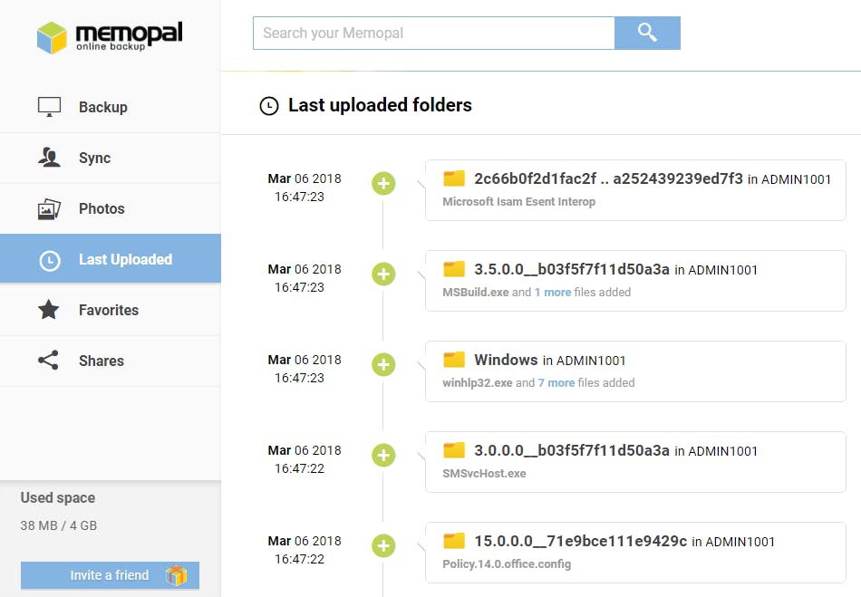 Als je eenmaal een account hebt, kun je wel online inloggen en je bestanden bekijken. Daarnaast heb je de mogelijkheid om tot maximaal drie vrienden uit te nodigen. Bij een succesvolle registratie van de nieuwe accounts krijg je 500 MB per gebruiker, en die 500 MB wordt ook opgeteld bij het account van de nieuwe gebruiker. De Memopal-app voor Windows biedt automatische back-upfunctionaliteit voor pc’s, maar ook een los synchronisatieonderdeel waarmee je bestanden tussen apparaten kunt synchroniseren.