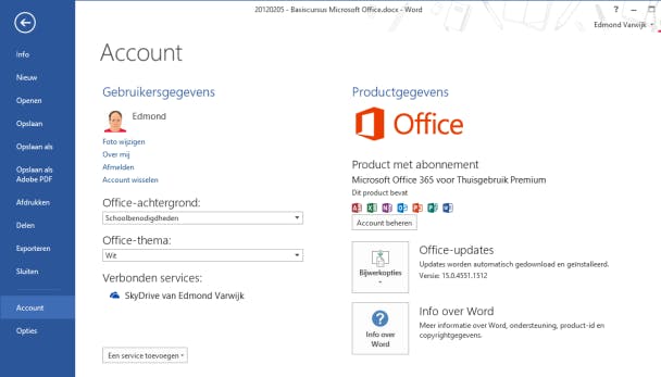 De Office Backstage laat zien welke licentie je gebruikt en welke programma's daarbij horen.