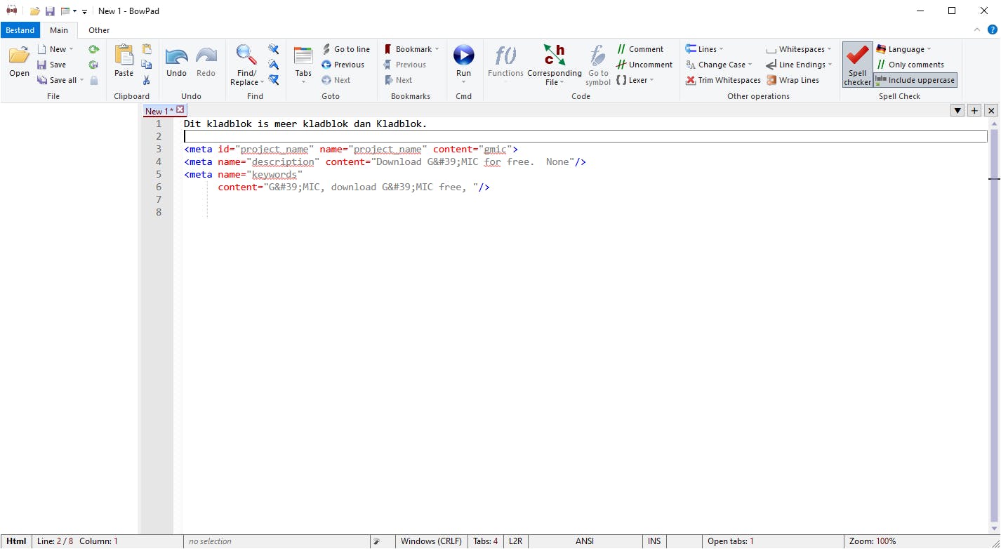 Voor het schrijven van een simpel tekstje volstaat Kladblok, en wie complexe documenten moet maken kan terecht bij Word of een van de gratis concurrenten. Dat soort programma’s biedt echter geen speciale functionaliteit voor wie iets moet schrijven met een bepaalde syntax, zoals een html-document. Voor dat doel is BowPad een aantrekkelijke optie.