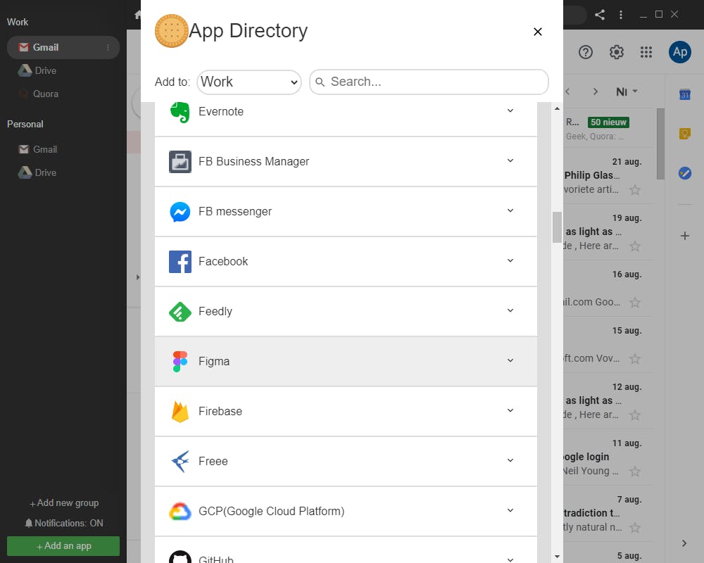 We zijn voor steeds meer zaken online op allerlei platforms. Om niet voortdurend her en der te moeten inloggen, houden de fanatiekere internetters dan ook allerlei tabbladen open in hun browser, maar dat is uiteraard niet erg overzichtelijk en zo’n tabblad is bovendien per ongeluk gesloten voor je er erg in hebt. Biscuit belooft je leven wat dat betreft een stuk eenvoudiger te maken. In Biscuit kies je uit een groot aanbod je favoriete diensten en voer je je inloggegevens in (die uiteraard lokaal worden bewaard). Elk platform kun je vervolgens eenvoudig via een pictogram openen en net als bepaalde apps op je smartphone biedt Biscuit notificaties die je op de hoogte kunnen stellen van nieuwe activiteit op de diensten die je gebruikt. Om het allemaal nog overzichtelijker te maken, kun je diensten indelen in de categorieën privé en zakelijk en als je wilt kun je zelfs je eigen categorieën definiëren, zoals sociale media, clouddiensten, enzovoort.