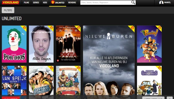 Net als Netflix biedt ook Videoland een abonnement aan waarmee je onbeperkt naar films kunt kijken. Voor Videoland Unlimited betaal je tien euro per maand. Houd er wel rekening mee dat het aanbod hiervan beperkter is vergeleken met het aanbod losse verhuurfilms. Videoland geeft met een Unlimited-abonnement hoofdzakelijk toegang tot films die al iets ouder zijn. Klik bovenaan op UNLIMITED en kies tweemaal voor PROBEER NU 1 MAAND GRATIS. Na de gratis proefmaand brengt Videoland pas kosten in rekening. Als je tijdig opzegt, kost het je dus niets. Het is verplicht om een betaalmethode te kiezen. Je hebt hierbij keuze tussen iDEAL en creditcard. Ter verificatie brengt de videodienst één cent in rekening. Nadat de betaling is geverifieerd, krijg je toegang tot Videoland Unlimited. Je start de weergave door met de cursor op een filmafbeelding te gaan staan, waarna je kiest voor KIJK FILM. Wil je Videoland Unlimited opzeggen? Klik rechtsboven op je profielnaam om je accountinstellingen te openen. Via VIDEOLAND UNLIMITED OPZEGGEN / VERDER wordt er geen geld meer van je rekening afgeschreven.
