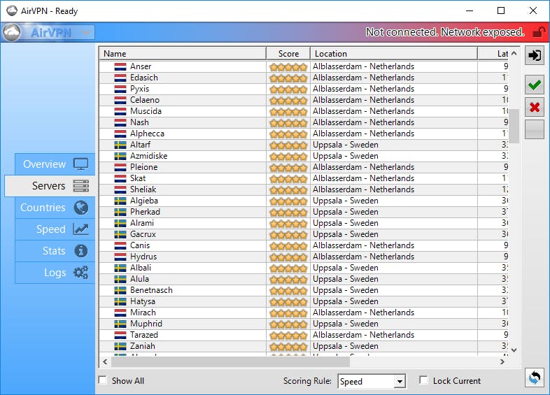 Naast ondersteuning voor alle bekende platformen met eigenontwikkelde software is AirVPN ook bruikbaar in combinatie met routerfirmware, zoals asuswrt, tomato en dd-wrt. Deze provider stimuleert zijn gebruikers om de verbinding middels openvpn in combinatie met ssh, ssl en tor te versleutelen. Op het moment van schrijven zijn er 216 vpn-servers actief. De belangrijkste afwezige is een Australische server. Verder is het aanbod in Azië beperkt. Fijn is dat AirVPN zeer veel betalingsmethoden accepteert, waaronder bitcoin, PayPal en zelfs het Nederlandse iDEAL.