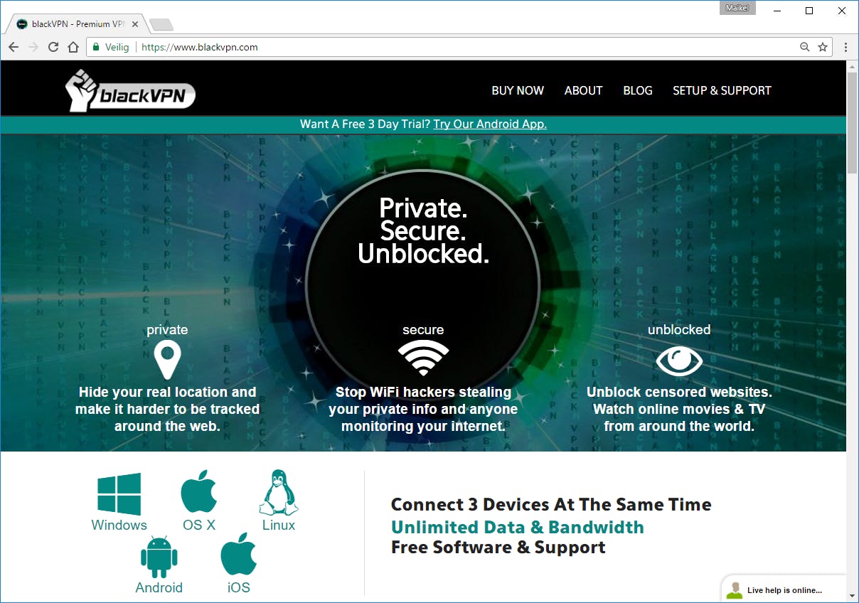 Zoals je van een moderne vpn-provider mag verwachten, zijn er clients voor Windows, macOS, Linux, iOS en Android. Op het laatstgenoemde platform krijg je drie dagen gratis toegang tot de dienst. Wie toegang wil tot alle beschikbare vpn-servers, betaalt hiervoor 9,50 euro per maand. Overigens ondersteunt BlackVPN ook het gebruik van aangepaste routerfirmware om alle apparaten in het netwerk te beveiligen. Wat betreft de encryptieprotocollen hebben gebruikers keuze tussen openvpn, ipsec/l2tp en het onveilige pptp. Er zijn relatief weinig vpn-servers beschikbaar, al zijn de belangrijkste landen wel vertegenwoordigd.