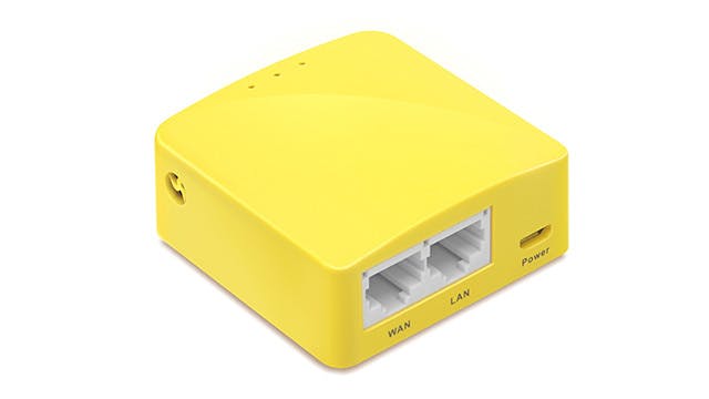 De GL-MT300N-V2 is een draagbare router gericht op vakanties of zakenreizen. Je verbindt het routertje met een (openbaar) wifi-netwerk via een ethernetkabel, wifi-repeater, usb-modem of via tethering. De router onderscheidt zich met zijn compacte afmetingen, geringe gewicht (40 gram) en scherpe prijs van zo’n twee tientjes. Hij is onder meer te koop via Amazon.
