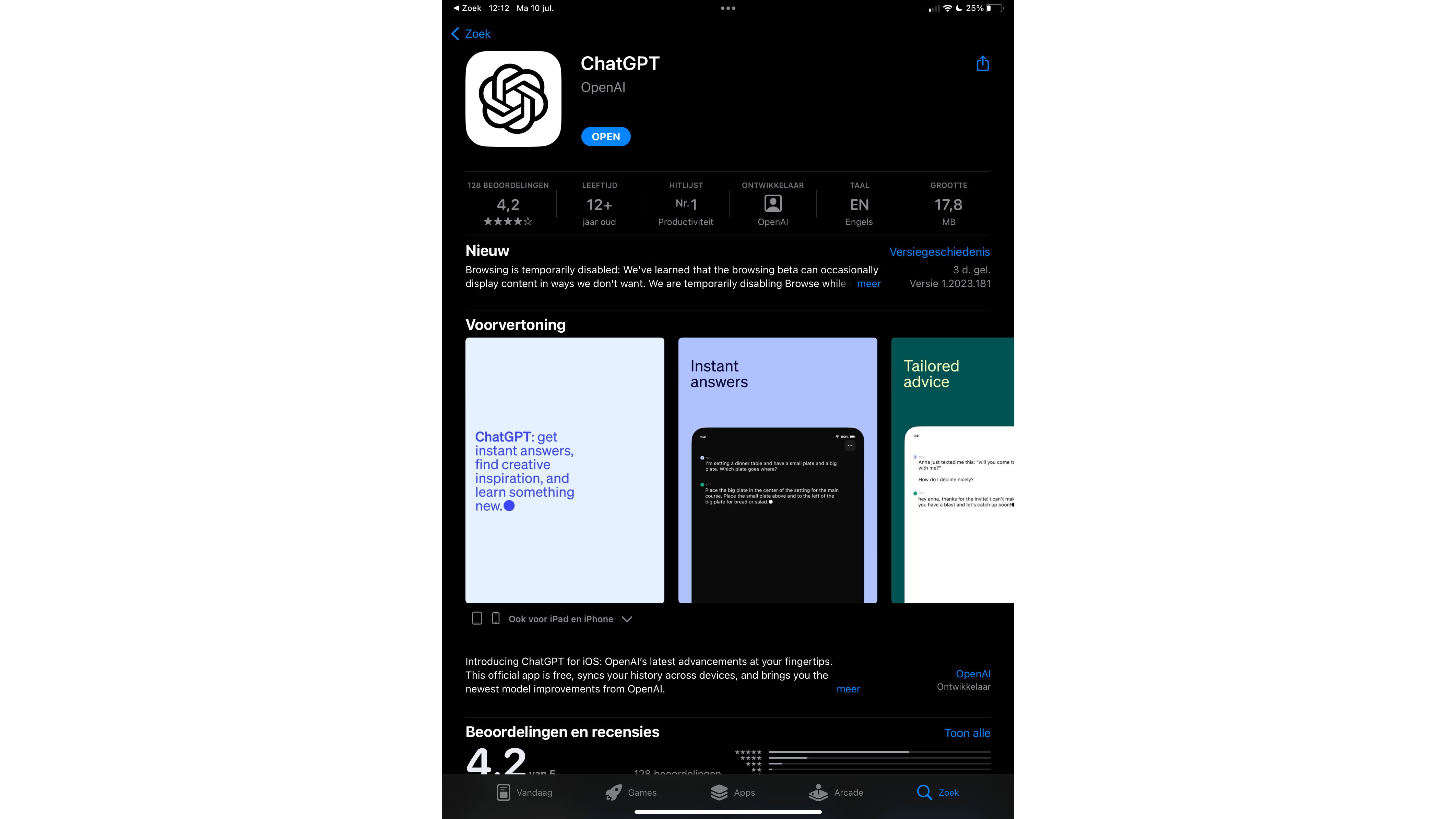 Je vindt de officiële app in de App Store van Apple en de Play Store van Google. Ga je zelf op zoek naar de app, let dan goed op dat je de juiste app selecteert. Gezien de populariteit van AI zijn er talloze apps beschikbaar, met namen die op elkaar lijken en logo’s die nauwelijks onderscheidend zijn. Sommige apps vragen flinke bedragen of verplichten tot een abonnement. De officiële ChatGPT-app is afkomstig van uitgever OpenAI en mag gratis worden gedownload en gebruikt.