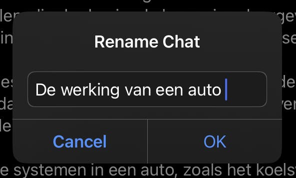 Tik rechts bovenin op de drie puntjes (...) en kies Naam wijzigen. Wil je een chatconversatie niet bewaren, dan vind je in hetzelfde menu de optie Verwijderen. Het is vooralsnog niet mogelijk om de chatgeschiedenis via de app leeg te maken.