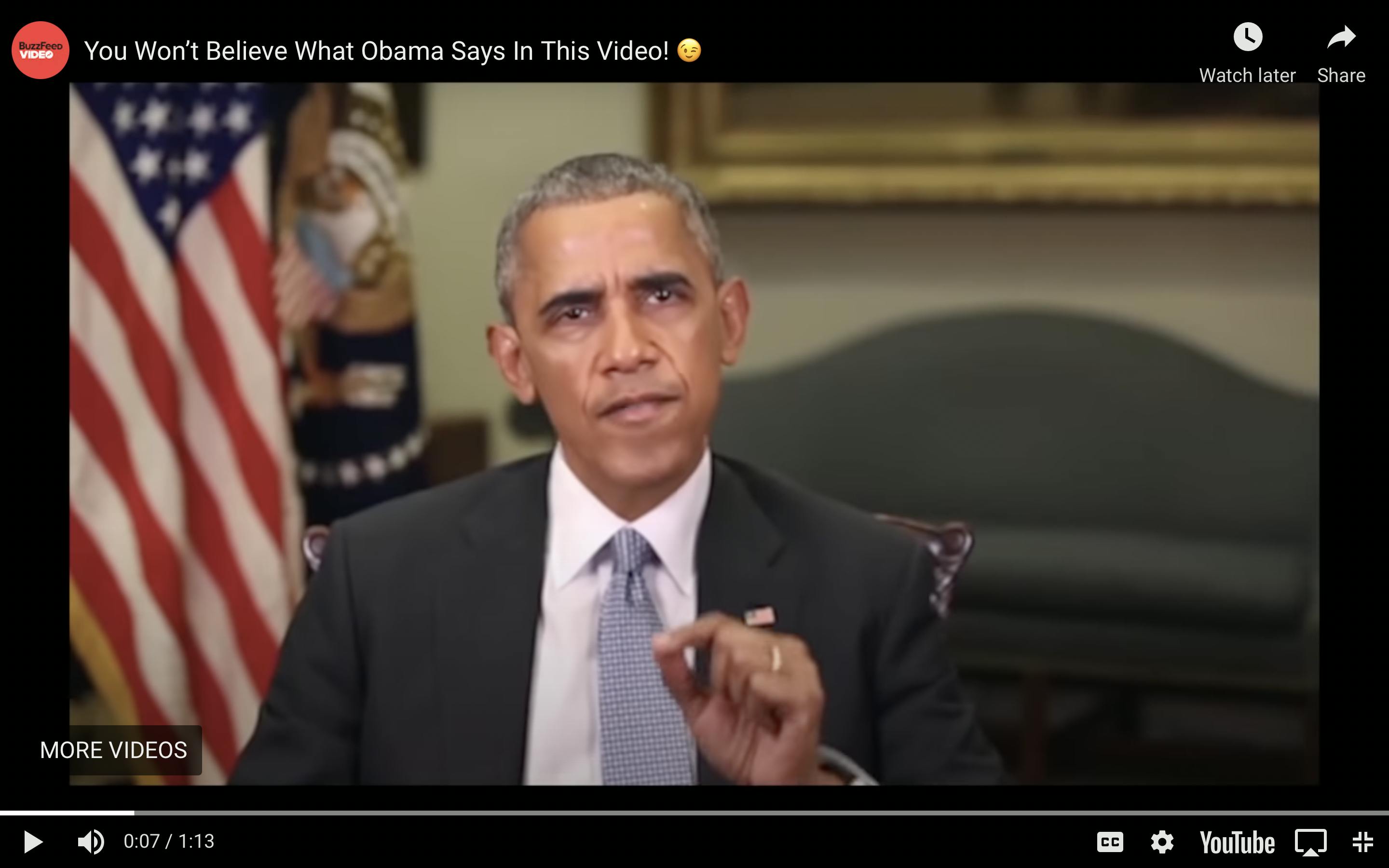 Ook regimes en politieke groeperingen kunnen deepfakes inzetten, om zo bewust desinformatie te verspreiden. Om te waarschuwen voor ‘de toekomst van fake news’, liet nieuws- en entertainment-website Buzzfeed in het voorjaar van 2018 een deepfake video van Barack Obama maken. In deze korte video beledigt Obama niet alleen Trump, maar spreekt hij ook waarschuwende woorden: we leven in een tijdperk waarin je zorgvuldig moet zijn in het kiezen van je informatiebronnen.
