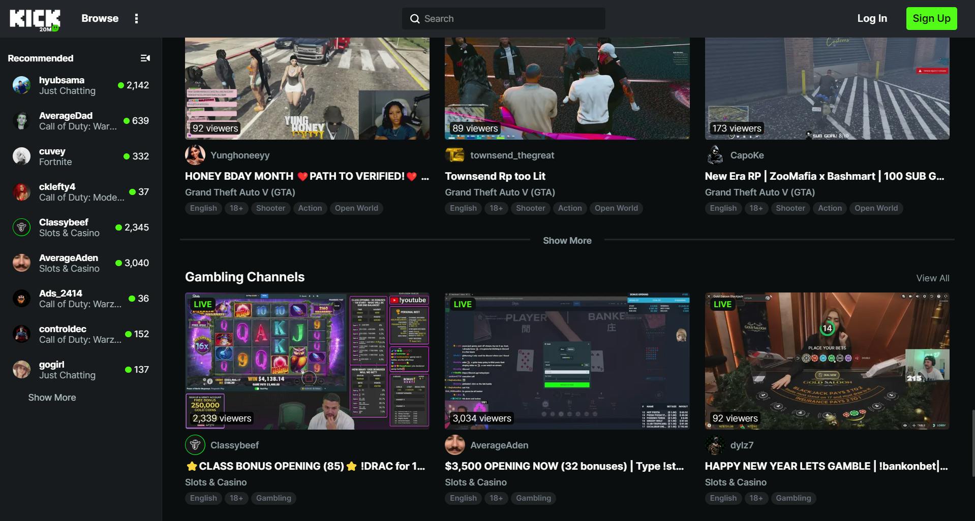 Kick kan dat soort bedragen betalen, omdat het is gefinancierd door een aantal grote Australische gokbedrijven. Het is dan ook niet verwonderlijk dat het platform flink de nadruk legt op gokstreams. Die worden prominent geadverteerd op de voorpagina (al kun je de aanwezigheid van de gokcategorie in de instellingen verbergen), en veel ‘gekochte’ streamers spelen als onderdeel van hun contract dan ook geregeld gokspellen op de sites van de geldschieters.