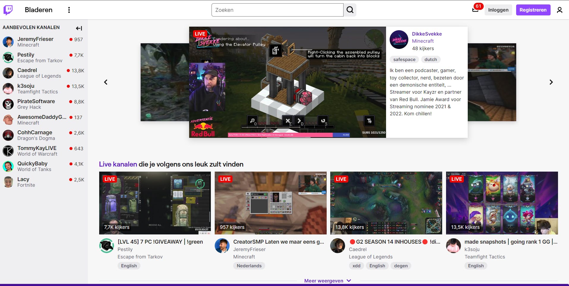 Daarnaast is Kicks algoritme (mede door het relatief lage aantal gebruikers) goed afgestemd op onbekende streamers, waardoor het regelmatig voorkomt dat een streamer met een handjevol kijkers aan je wordt aanbevolen. Goed nieuws als je net begint met streamen dus, al moet hierbij wel de kanttekening geplaatst worden dat het Nederlandse publiek nog zeer klein is. Als je in het Engels streamt, maak je veel meer kans om op Kick ontdekt te worden.