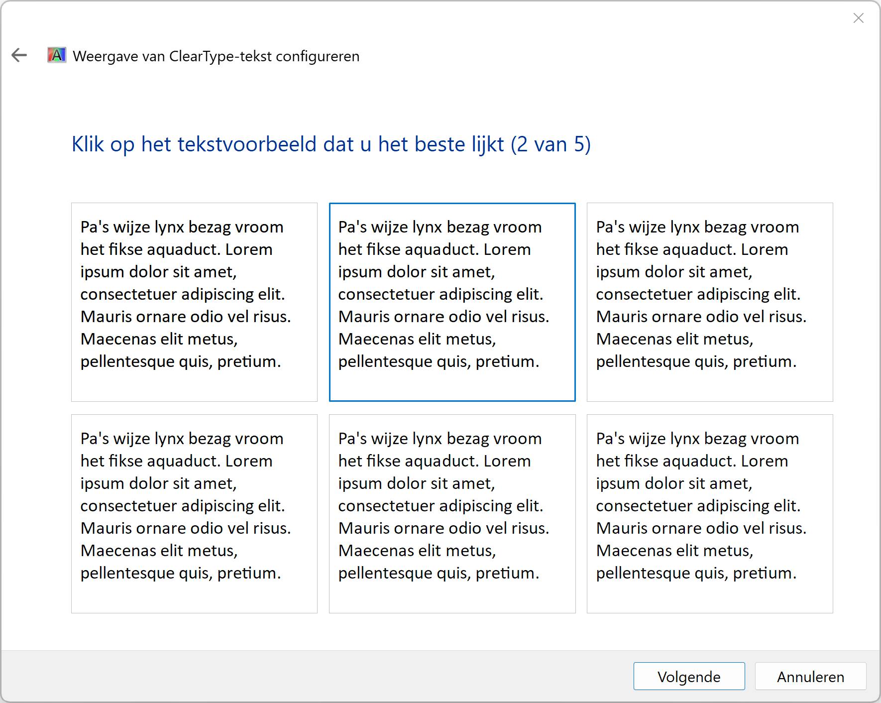 ClearType is ingebakken in Windows en zorgt ervoor dat letters vloeiend op je scherm worden getoond. Wist je dat ClearType meerdere modi kent en je normaal gesproken de kans niet krijgt om de meest optimale modus voor je ogen en het gebruikte beeldscherm te selecteren? Open het Startmenu en typ cttune, gevolgd door Enter. Een wizard opent. Doorloop de verschillende vensters en geef aan van welke ClearType-modus je gebruik wilt maken.