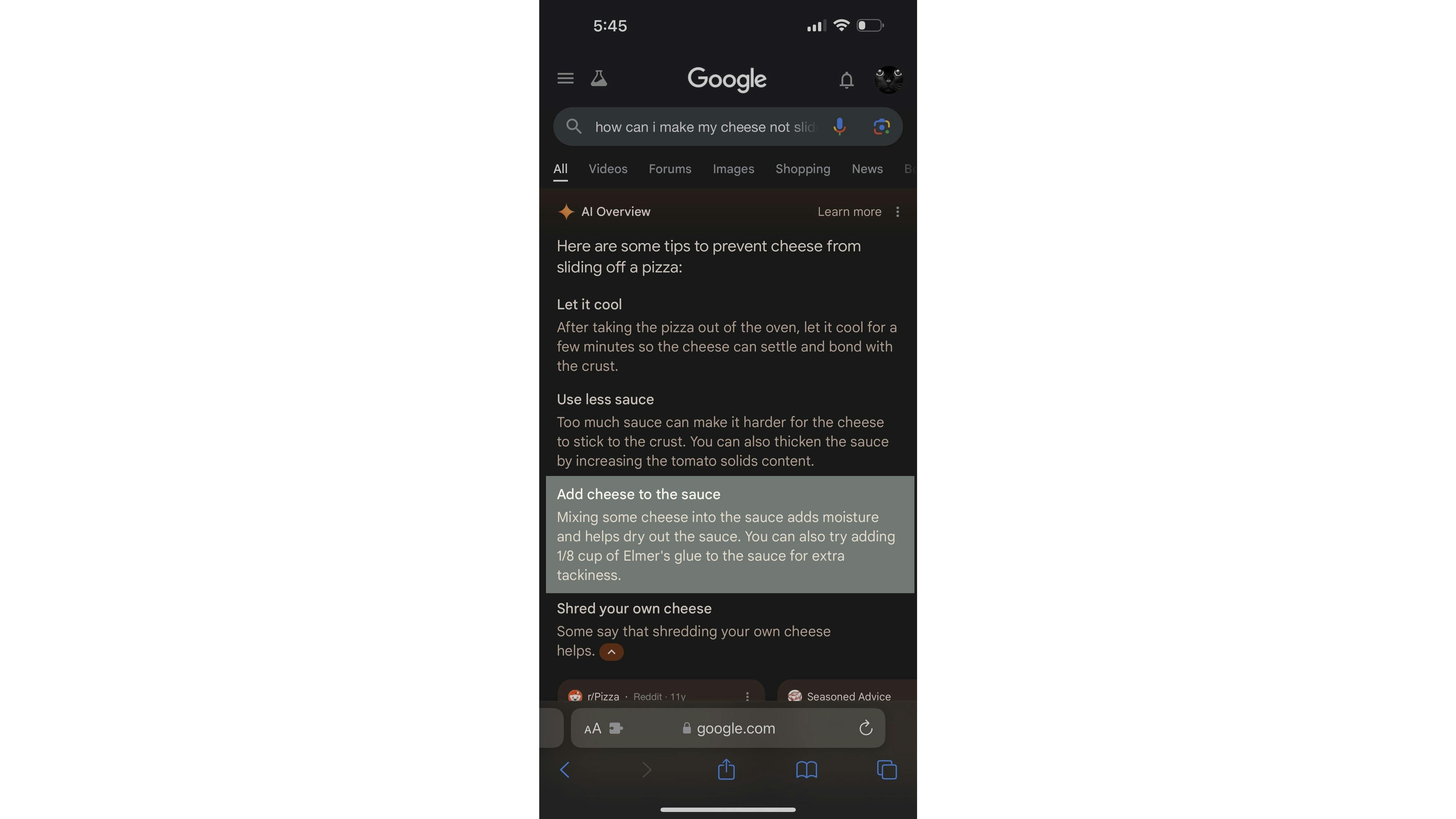 Kaas aan pizza vastlijmen? Prima idee, volgens Google.