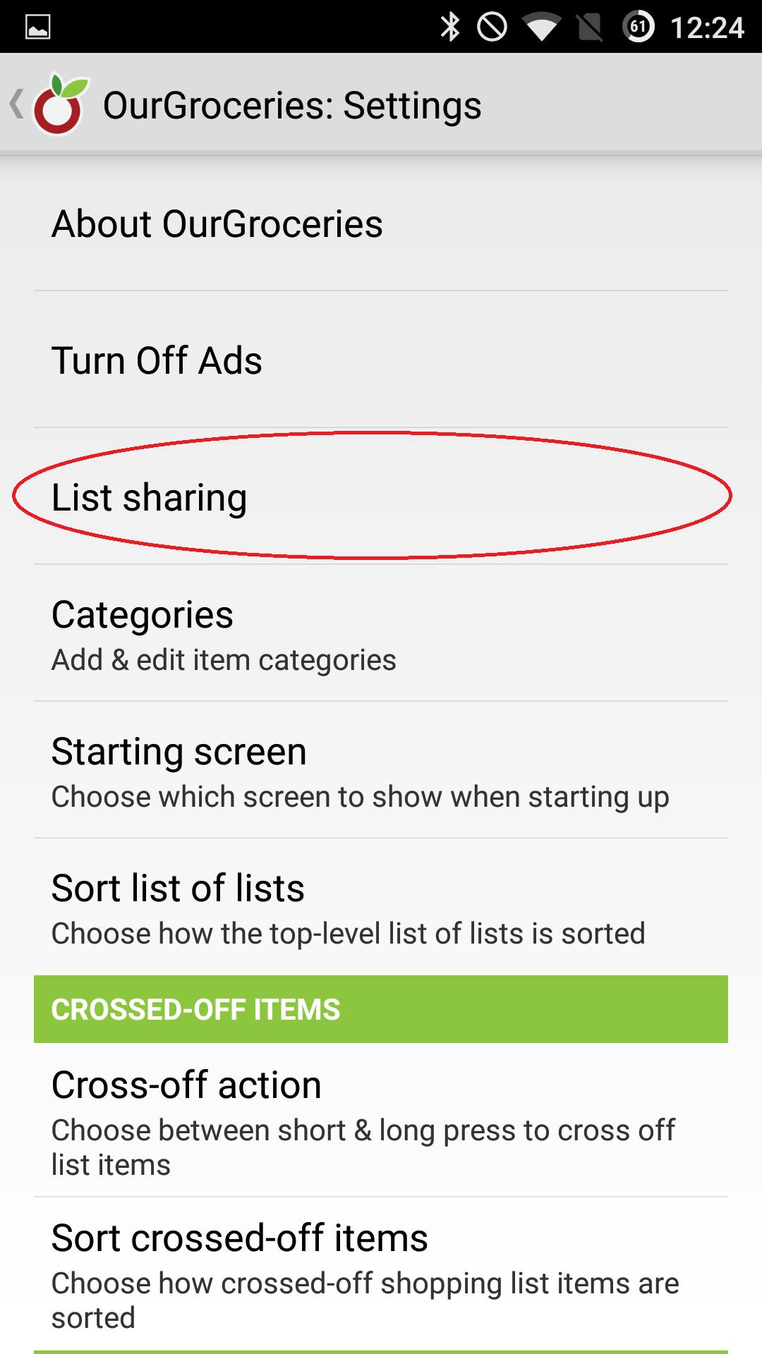 Iemand anders in je huishouden kan nu toegang vragen tot je lijst. Dat doe je op het andere toestel op dezelfde manier: Je gaat naar de 'Instellingen' en vervolgens naar 'List sharing'. Je vult hier het adres in dat de deler op zijn/haar telefoon heeft ingevoerd.