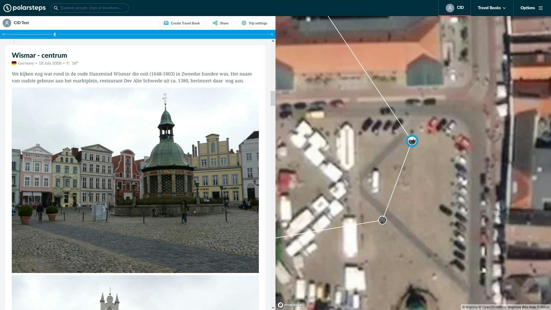 Polarsteps herkent zelf de plaatsnaam waarop je hebt geklikt en vult deze in.