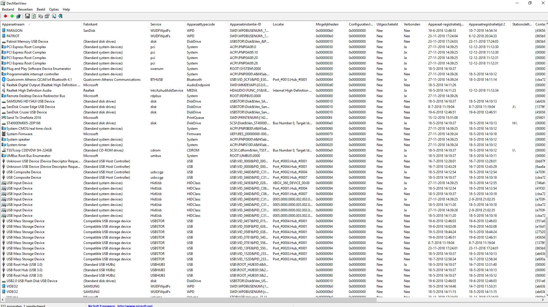 Alles wat geen software is heet in Windows een apparaat en om in de gegevens daarvan te snuffelen hebben we Apparaatbeheer. Wie echter écht het naadje van de kous wil weten wende zich tot DevManView. Dit programma geeft een lijst van alle apparaten en doet dat niet in de boomstructuur die Windows daarvoor gebruikt. Dat betekent dat u ze op allerlei technische kenmerken kunt sorteren. Ook kunt u apparaten in of uitschakelen (pas daarbij goed op!) of de bijbehorende registerverwijzing bekijken. Geavanceerde gebruikers kunnen zelfs met een alternatieve apparaatlijst werken bij hardware-problemen.