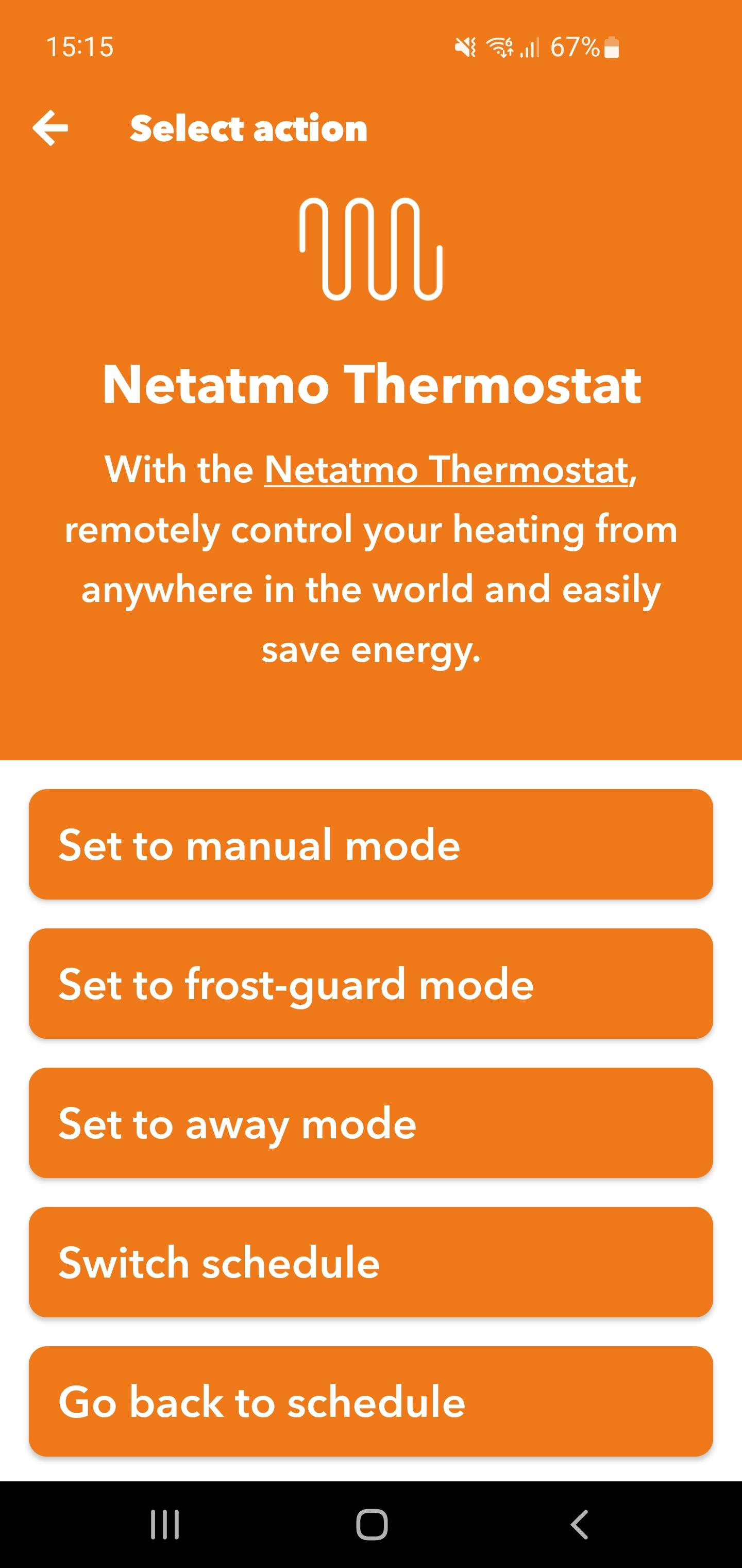 Klik op Add bij If This, tik location in de zoekbalk en selecteer de gelijknamige dienst. Kies You enter an area, geef IFTTT toegang tot je locatie via Tijdens gebruik van de app en tik een geschikt adres in of je versleept de kaart handmatig. Bevestig met het vinkje en tik op Continue. Vervolgens tik je op Add bij Then That en zoek je naar thermostat, waar je het gewenste type thermostaat aanduidt, zoals Honeywell of Netatmo Thermostat. Bij deze laatste bijvoorbeeld selecteer je Set to manual mode en stel je na je aanmelding via Connect de temperatuur in. Bevestig je keuzes om je applet te bewaren en te activeren.
