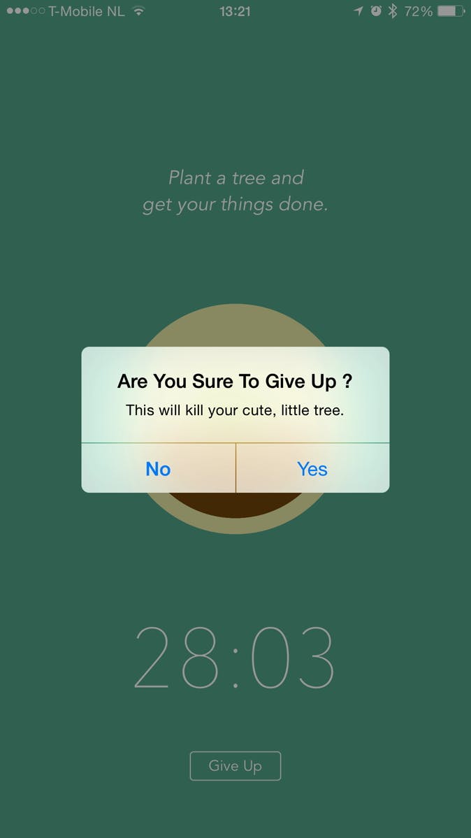 Vervolgens leg je je telefoon weg en blijf je er van af. Voor elke dertig minuten dat je je iPhone niet gebruikt, groeit er een boom. Als je toch de app sluit, gaat de nu groeiende boom dood. Zo leert dus de iPhone je zelfs hoe je soms even beter af bent zonder iPhone.