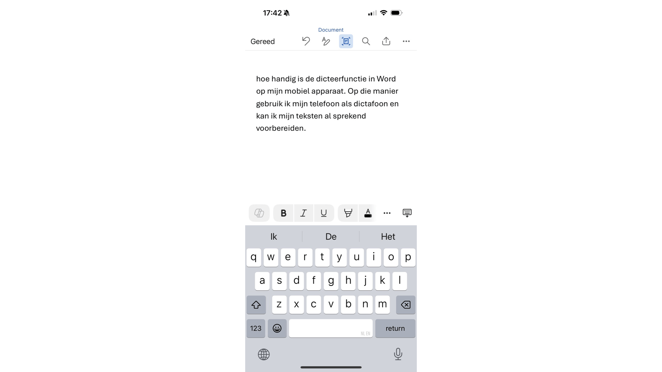 Ook op een mobiel apparaat werkt de dicteerfunctie van Word uitstekend.