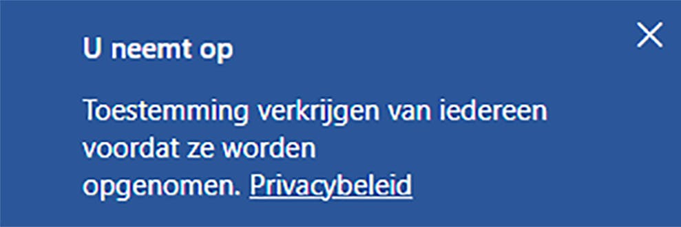 Voor de opname start, waarschuwt Microsoft dat je toestemming moet vragen van alle sprekers.