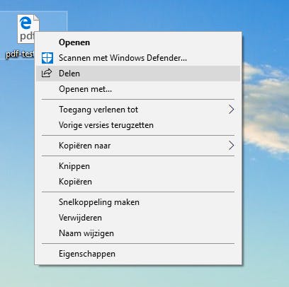 In de Windows Verkenner in Windows 10 Fall Creators Update is een nieuwe functie toegevoegd. Wanneer je met de rechtermuisknop op een bestand klikt, is daar een nieuwe optie bijgekomen: Delen.