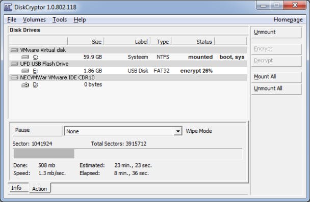 Wat DiskCryptor wel goed kan is het versleutelen van harde schijven, partities en usb-opslagmedia als een usb-geheugenstick of een externe harde schijf. Zo'n schijf versleutelen en later koppelen gaat erg eenvoudig en vereist minder handelingen dan bij TrueCrypt. TrueCrypt biedt meer opties maar stelt ook heel veel meer vragen, zelfs al zijn die verpakt in een vriendelijke wizard. Bij DiskCryptor geen wizard maar gewoon twee, drie opties en klaar. De rest doet het programma. Vooral het versleutelen van de systeemschijf gaat in DiskCryptor daardoor veel gemakkelijker en dat zal beginnende beveiligers zeker aanspreken.