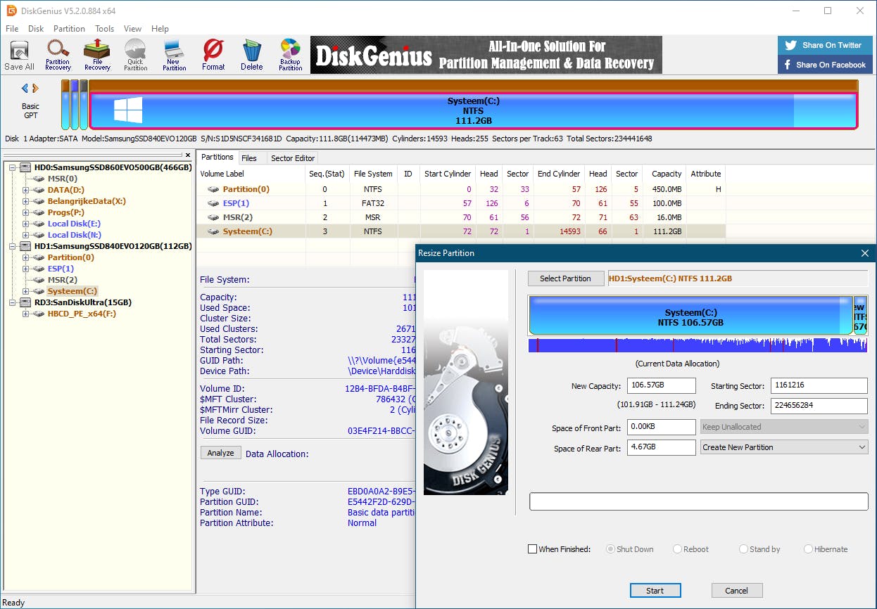 **Prijs** Gratis (met beperkingen) **Taal** Engels **OS** Windows 7 en hoger **Website** [www.diskgenius.com](http://www.diskgenius.com/)