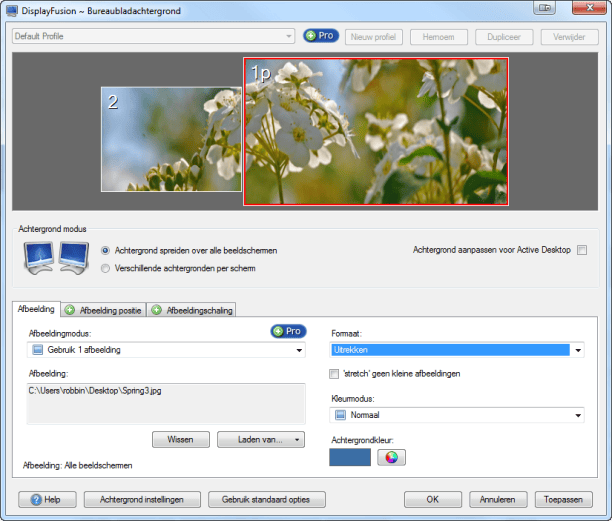 Met DisplayFusion optimaliseert u uw bureaubladachtergrond voor het gebruik van meerdere monitoren.