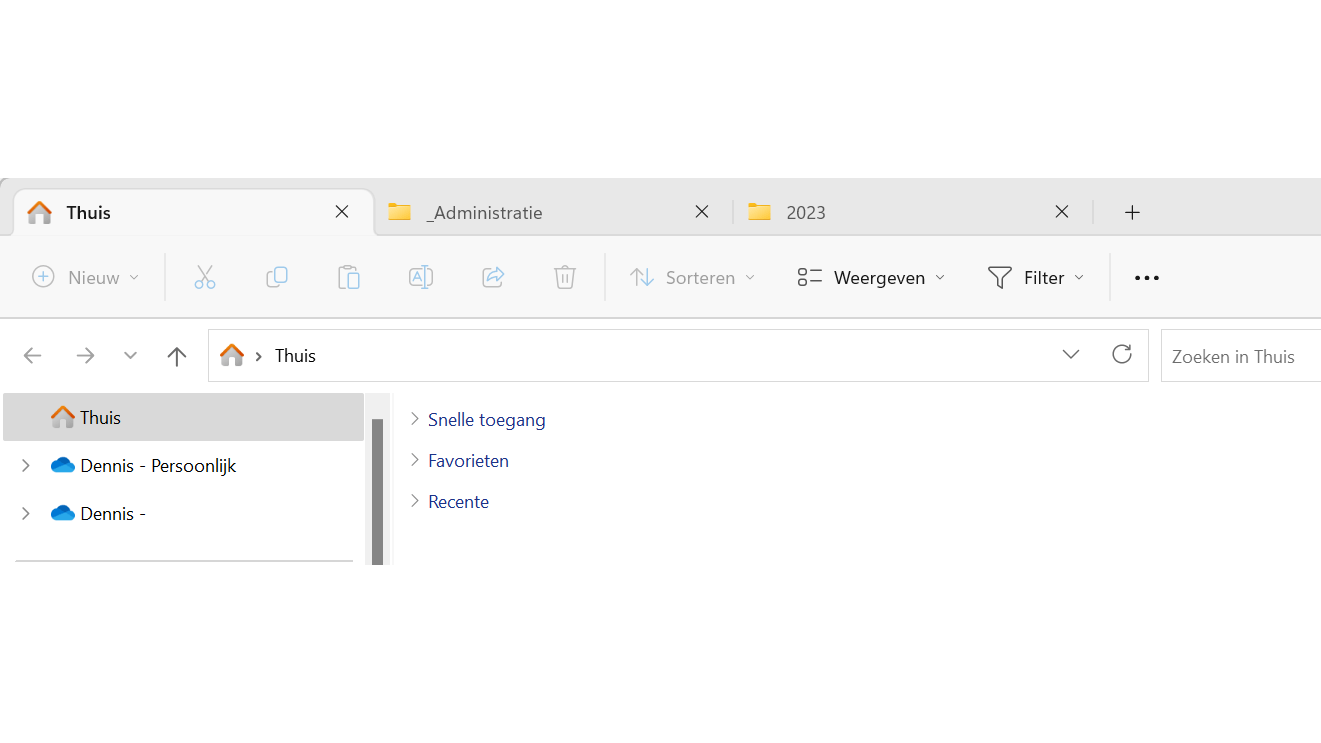 Linksboven vind je de sectie Thuis. Klik hierop voor een overzicht van items uit de sectie Snelle toegang. Ook worden hier favoriete bestanden getoond en vind je er een overzicht van recente bestanden. Wil je in één keer belangrijke informatie over je bestanden zien? Druk dan op Ctrl+Shift+P, hiermee opent een deelvenster binnen Verkenner. Selecteer een bestand voor aanvullende informatie.