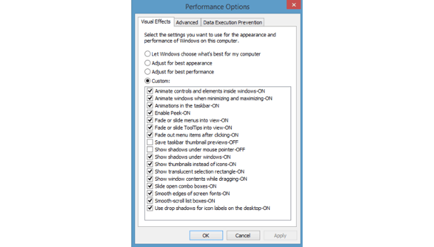 Standaard is het keuzerondje bij Let Windows choose what's best for my computer geselecteerd. Klik op Custom om je eigen voorkeuren te kiezen.