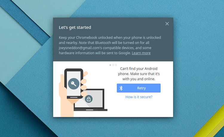 Smart Lock voor Chromebooks is de meest gemakkelijke functie om uit te leggen. Je kunt de dienst namelijk gebruiken voor het ontgrendelen van je Chromebook. Dat doe je via je Android-smartphone. Het werkt op zich prima, maar soms is het sneller om je wachtwoord of pincode te gebruiken. Je Chromebook en Android hebben namelijk bluetooth nodig om verbinding met elkaar te maken. En als je vaak je bluetooth uit hebt staan, kan dat nogal een gedoe worden mettertijd.