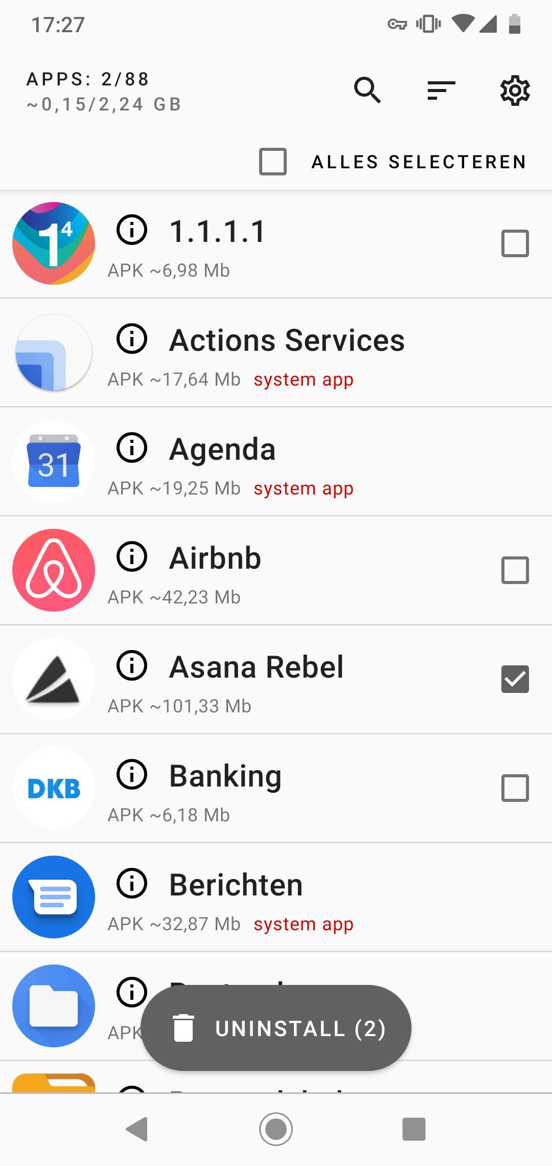 Een simpel maar briljant idee: deze app geeft je de mogelijkheid om meerdere apps in één keer te verwijderen. Selecteer in een lijst apps die je wilt verwijderen en UnApp verwijdert ze allemaal. Je moet per app nog wel even de actie bevestigen, maar de procedure is een stuk sneller dan wanneer je handmatig de apps wilt verwijderen. Je ziet in de lijst meteen hoeveel ruimte de apps in beslag nemen en kunt apps sorteren op toevoegingsdatum, naam en grootte.
