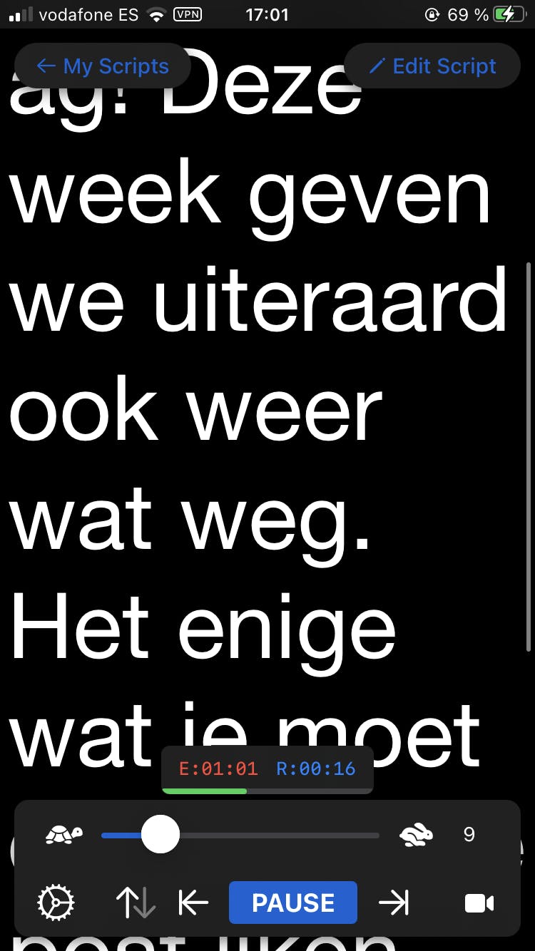Kies de snelheid waarmee de tekst voorbij moet scrollen en neem de video meteen in de app op, je ziet zowel het camerabeeld als de tekst. De video stuur je meteen naar je email of sla je op in je filmrol. Deze app is alleen voor iOS verkrijgbaar, voor Android zijn er wel wat alternatieven in de Play Store te vinden.
