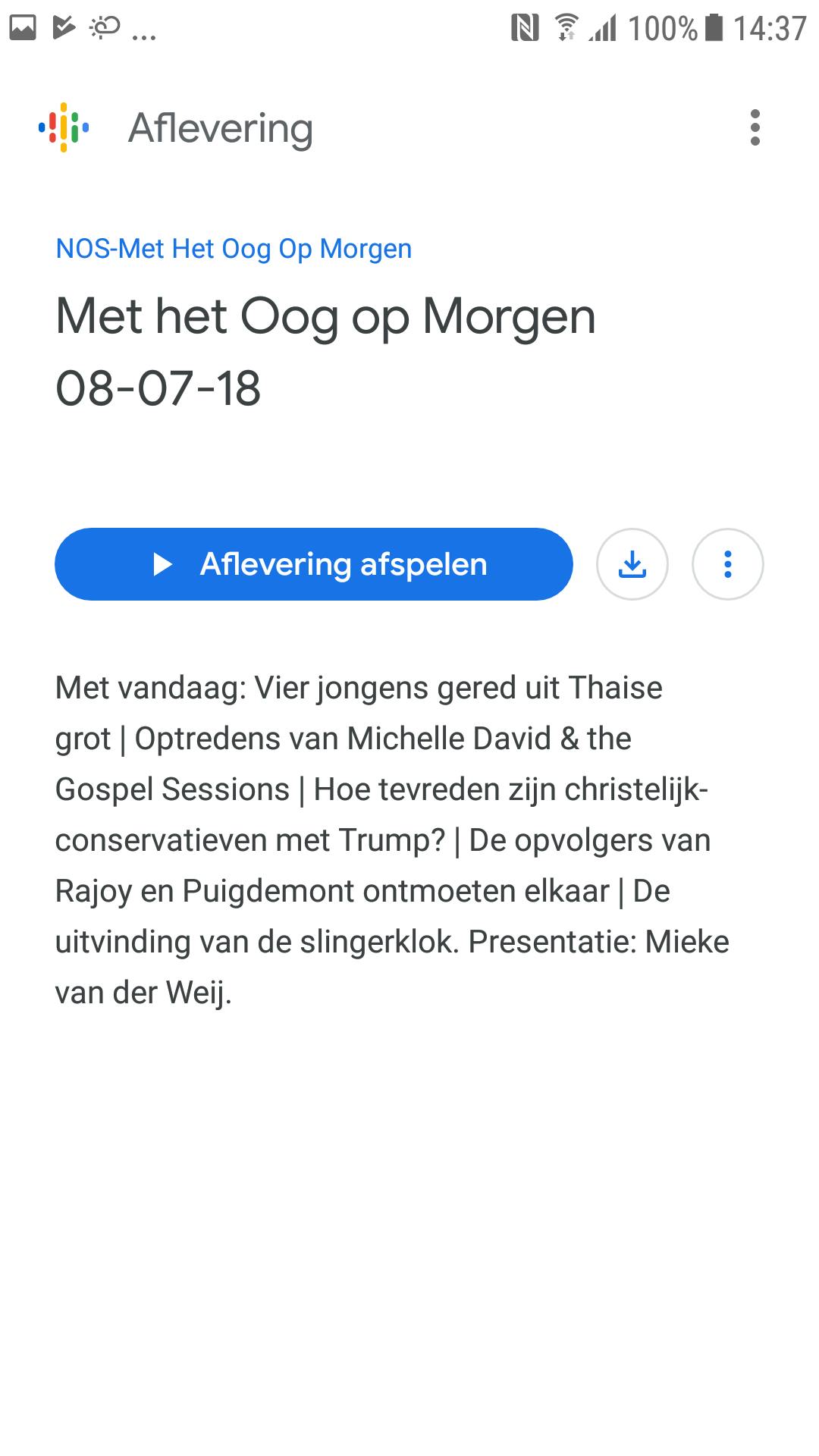 Je iPhone heeft al jaren een podcast-optie, Google heeft nu gelukkig ook zijn eigen podcasts-app. Tik op een podcast naar keuze en speel het meteen af. Uiteraard kun je je op bepaalde podcasts abonneren of een vorige aflevering terugluisteren. De app ziet er overzichtelijk uit en het is te verwachten dat Google in de loop van de tijd steeds meer functionaliteit gaat toevoegen, zoals ondersteuning voor Android Auto.