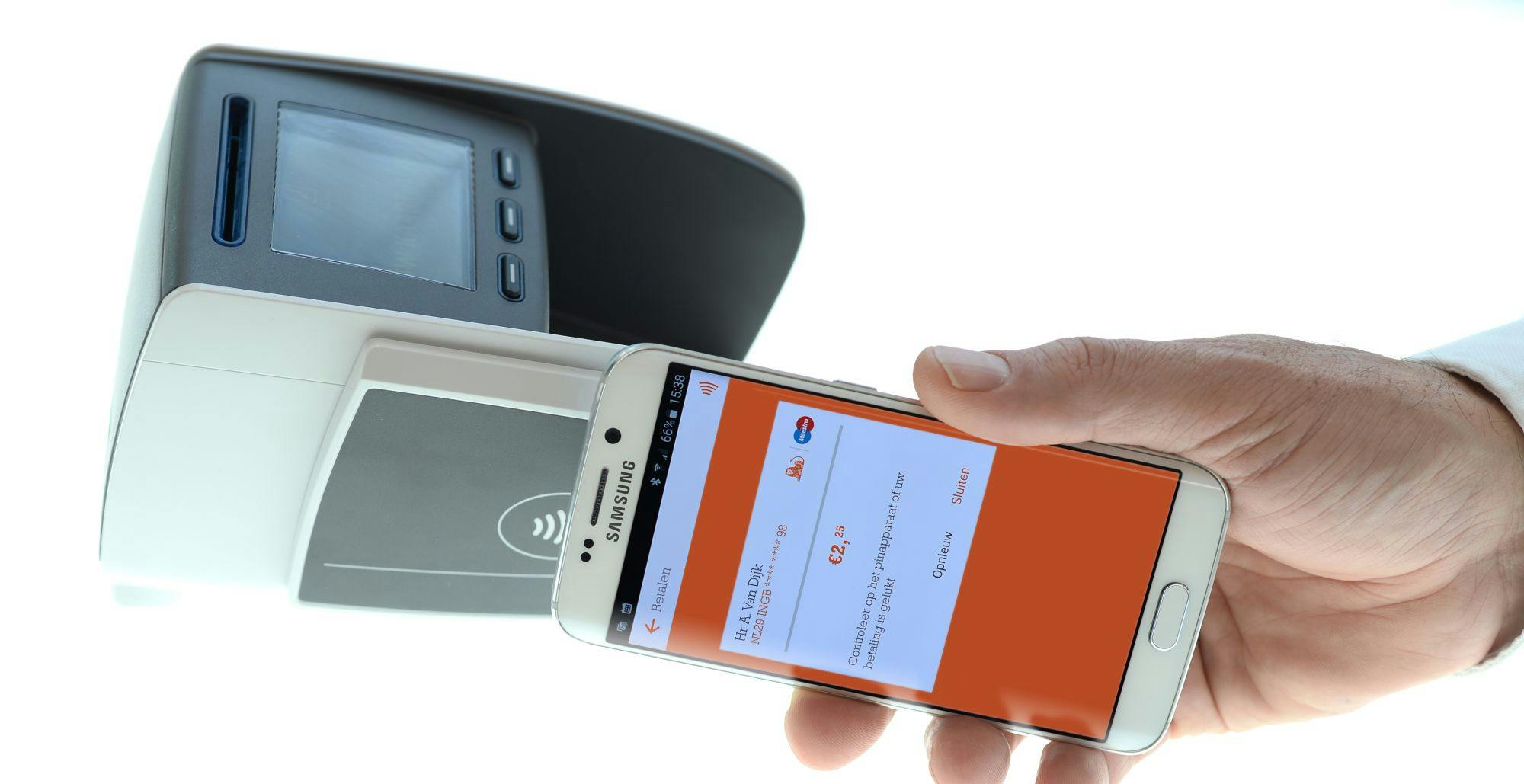 Bij alle grote banken kun je tegenwoordig contactloos betalen met een smartphone. Voorwaarde is wel dat je een Android-toestel gebruikt met een nfc-chip. Verder heb je hiervoor een aparte app nodig, zoals ING Mobiel Betalen. Vooral bij kleine bedragen tot 25 euro werkt het erg eenvoudig. Nadat je de smartphone uit de rustmodus hebt gehaald, houd je het toestel vlakbij het betaalapparaat. Het mobiele toestel laat vervolgens weten wanneer er is betaald, bijvoorbeeld via een trilsignaal. Voor grotere bedragen voer je eerst een pincode in, alvorens je de betaling kunt uitvoeren. Net als bij normale bankpassen geldt er overigens wel een pinlimiet. Houd er verder rekening mee dat sommige banken extra kosten vragen voor het gebruik van hun mobiel betalen-app. Zo rekent SNS hiervoor volgend jaar vijftig cent per maand.