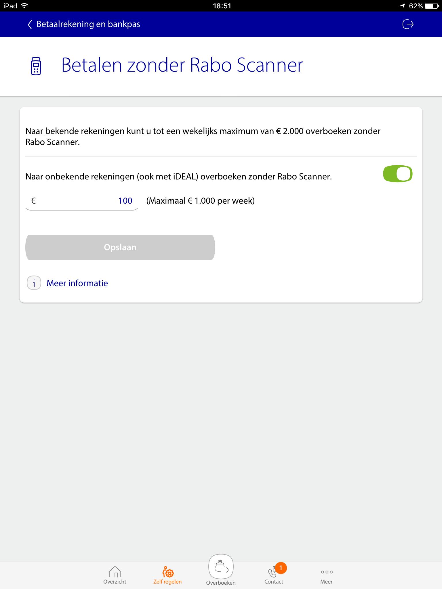 Overschrijven binnen de app gaat eenvoudig, waarbij er standaard een daglimiet geldt van 1500 euro. In de instellingen krik je dat op naar maximaal vijfduizend euro. Een leuke functie is dat je met je stem handsfree geld kunt overmaken, al lukt dat alleen naar contacten uit het adresboek. Verder gebruik je je stem ook om in te loggen. De stemherkenning werkt in de praktijk prima.