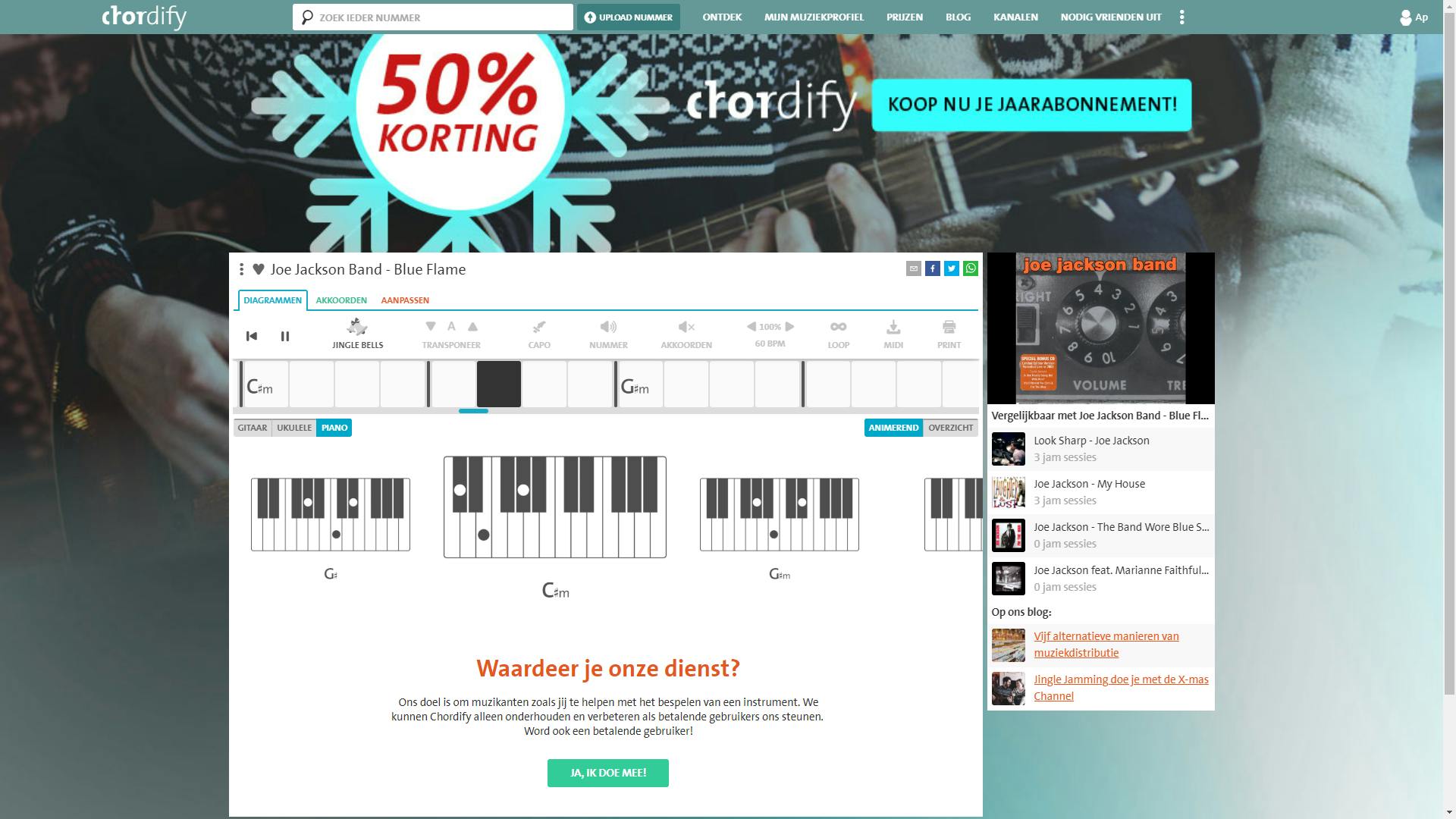 Door de jaren heen zijn er echter ook steeds meer programma’s, apps en online-diensten gekomen die nummers kunnen analyseren en zo de computer de akkoorden laten uitpluizen. Een van die diensten is Chordify. Weliswaar is Chordify een commercieel platform maar een voldoende groot deel ervan is voor iedereen gratis toegankelijk.