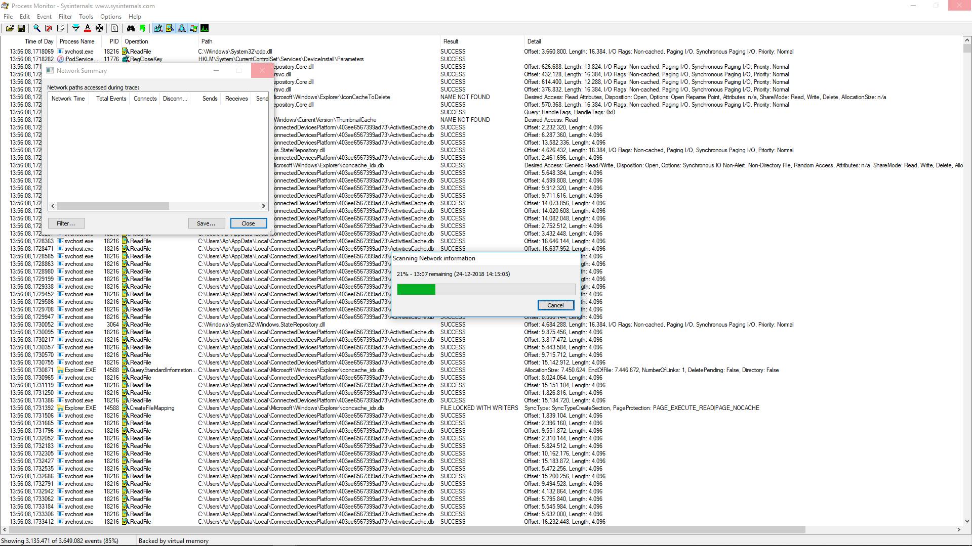 Process Monitor is een levend logboek waarin haast elke systeemgebeurtenis is terug te zien