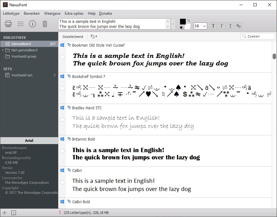 Voor de meeste doeleinden heb je aan een handjevol lettertypen genoeg en de collectie die bij Windows wordt geleverd, voldoet doorgaans dan ook uitstekend. Dat wordt een ander verhaal wanneer je zelf nieuwsbrieven, wenskaarten of affiches ontwerpt; dan heb je al snel behoefte aan specifieke lettertypen om het gewenste resultaat te bereiken. Op internet vind je een gigantisch aanbod aan gratis moois, maar als je dat allemaal gaat installeren, loopt binnen de kortste keren je bewerkingsprogramma vast, omdat het van al die lettertypen een voorvertoning moet downloaden. Je kunt dan beter de lettertypen die je maar een enkele keer gebruikt na gebruik terugzetten in een aparte map. Dat gaat het eenvoudigst met een zogeheten fontmanager. Nexusfont is voor dit doel een uitstekende keuze. Open je een map met externe lettertypen dan kun je vanuit het contextmenu een font installeren naar de Windows-map en open je de Windows-map dan kun je op dezelfde manier het omgekeerde doen. Daarnaast kun je van elk lettertype vooraf de zogeheten character-map bekijken; dat zijn alle tekens die het lettertype bevat. Iets wat je vooral doet als je iets in niet-Westers schrift wilt maken, omdat lang niet elk lettertype alle Unicode-symbolen aanbiedt.