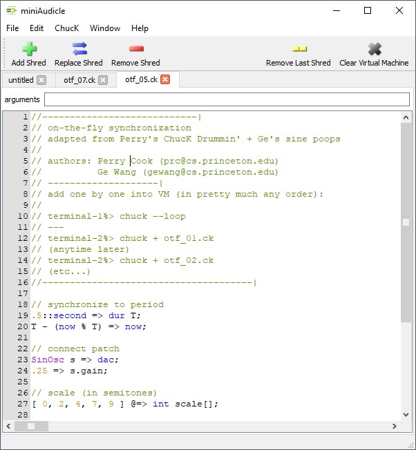 Al vele eeuwen lang worden muziekstukken in notenschrift opgeschreven. Met de komst van de computer kwam daar ineens een heel scala aan mogelijkheden bij. Niet alleen kunnen we nu noten schrijven in speciale software, maar er zijn ook programma’s waarin we de toonhoogte en duur van noten kunnen invoeren op een zogeheten pianorol. Het briljante programma ChucK gaat echter nog een stap verder. Het is een programmeertaal waarin je via korte opdrachten klanken kunt afspelen op een virtuele machine. Die virtuele machine kan bovendien meerdere stukjes code tegelijk en synchroon afspelen en je kunt ’m ook nog eens live aanpassen. Voeg daarbij de mogelijkheid om geluid niet alleen af te spelen via de pc, maar ook via een externe synthesizer en je kunt je wel indenken dat je zo enorm complete en hoogwaardige muziekstukken kunt maken. ChucK wordt dan ook gebruikt door een actieve gemeenschap van audiokunstenaars.
