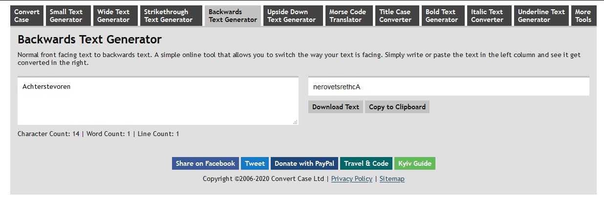 De website Convert Case biedt hier uitkomst: kopieer je tekst naar deze site en hij maakt er met één muisklik kleine letters van die je weer terug kunt kopiëren. Dat is echter nog maar het begin van de vele mogelijkheden. Convert Case kent ook trucjes die je in een tekstverwerker tevergeefs zult zoeken, zoals het op zijn kop zetten van tekst (kun je bijvoorbeeld gebruiken om antwoorden op dezelfde pagina van een vraag te ‘verstoppen’), het achterstevoren plaatsen van tekst, het uitrekken van tekst en zelfs het omtoveren van tekst tot morsecode.