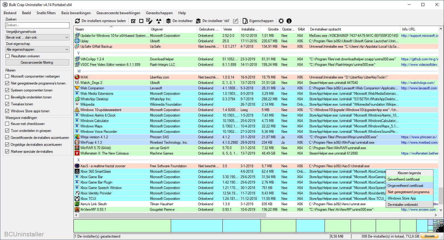 Windows heet niet voor niets ‘besturingssysteem’. Het is vrijwel alleen een softwarelaag die interactie mogelijk maakt tussen de hardware en de gebruiker. Natuurlijk bevat Windows wel wat applicaties, maar als het daar ophield, zou niemand een pc bezitten. Die komt ten slotte pas echt tot zijn recht met tonnen programma’s van derden (of van Microsoft, natuurlijk). Maar ja, van alles wat je erop zet wil je soms ook wel weer eens wat kwijt en uiteraard biedt Windows voor het verwijderen van programma’s een onderdeel. Helaas is dat erg mager en dus kan het zomaar gebeuren dat er troep achterblijft. Anderzijds is het denkbaar dat je per ongeluk de uninstaller van een toepassing verwijdert, waardoor Windows die niet meer op de reguliere wijze kan verwijderen. Ook kunnen de gespecialiseerde verwijderaars die bij een applicatie horen achterblijven terwijl het moederprogramma al gewist is. Allemaal situaties waar zwaarder geschut nodig is dan wat Windows biedt. Dat geschut vinden we in het sublieme Bulk Crap Uninstaller, kortweg BCU, dat veel meer software toont dan Windows en dat na het verwijderen van een programma de gelegenheid biedt om naar achtergebleven resten te zoeken.