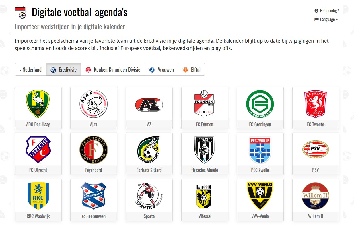 Jarenlang was het vaste prik: voetballen op zondagmiddag, de ene week uit, de andere thuis. Tegenwoordig is het niet meer bij te houden voor de liefhebbers van publiekssport nummer één. Alleen al de Nederlandse competitie in de hoogste klasse is zo’n beetje over alle dagen van de week verspreid en dan zijn er nog de diverse continentale en mondiale toernooien voor clubteams en landen en moet de liefhebber tegenwoordig ook nog bijhouden hoe de dames het er op de groene mat vanaf brengen. Ga d’r maar aan staan! Gelukkig is er een online oplossing in de vorm van www.maak-agenda.nl.