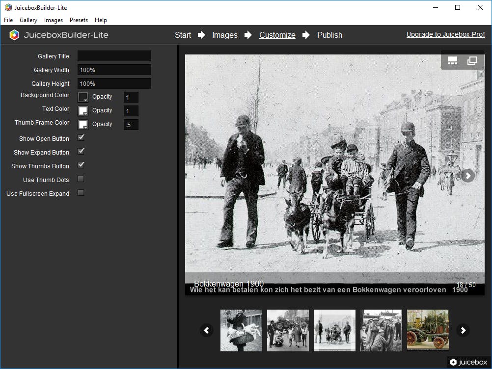 Dat kan bijvoorbeeld met Juicebox Lite. Dit is de gratis versie van een commercieel programma voor het maken van fraaie op html5 gebaseerde webalbums.