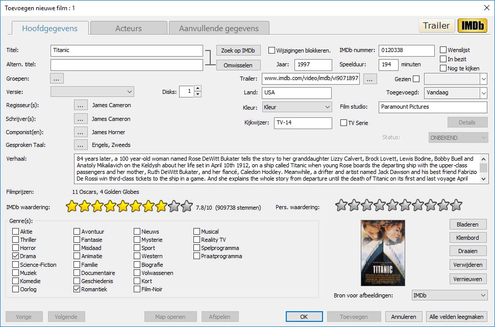 Maar hoe houd je bij dat alles in de gaten wat je bezit? Hoe bepaal je waar je moet zoeken wanneer je vanavond zin hebt in een thriller met Julia Roberts in de hoofdrol? Hoe onthoud je dat je die dvd van Titanic aan zus Marieke hebt uitgeleend? Dat alles en meer doe je met EMDB, wat staat voor Eric’s Movie Database en dat voor zowel films als series alles aan boord heeft voor het beheren van de verzameling.